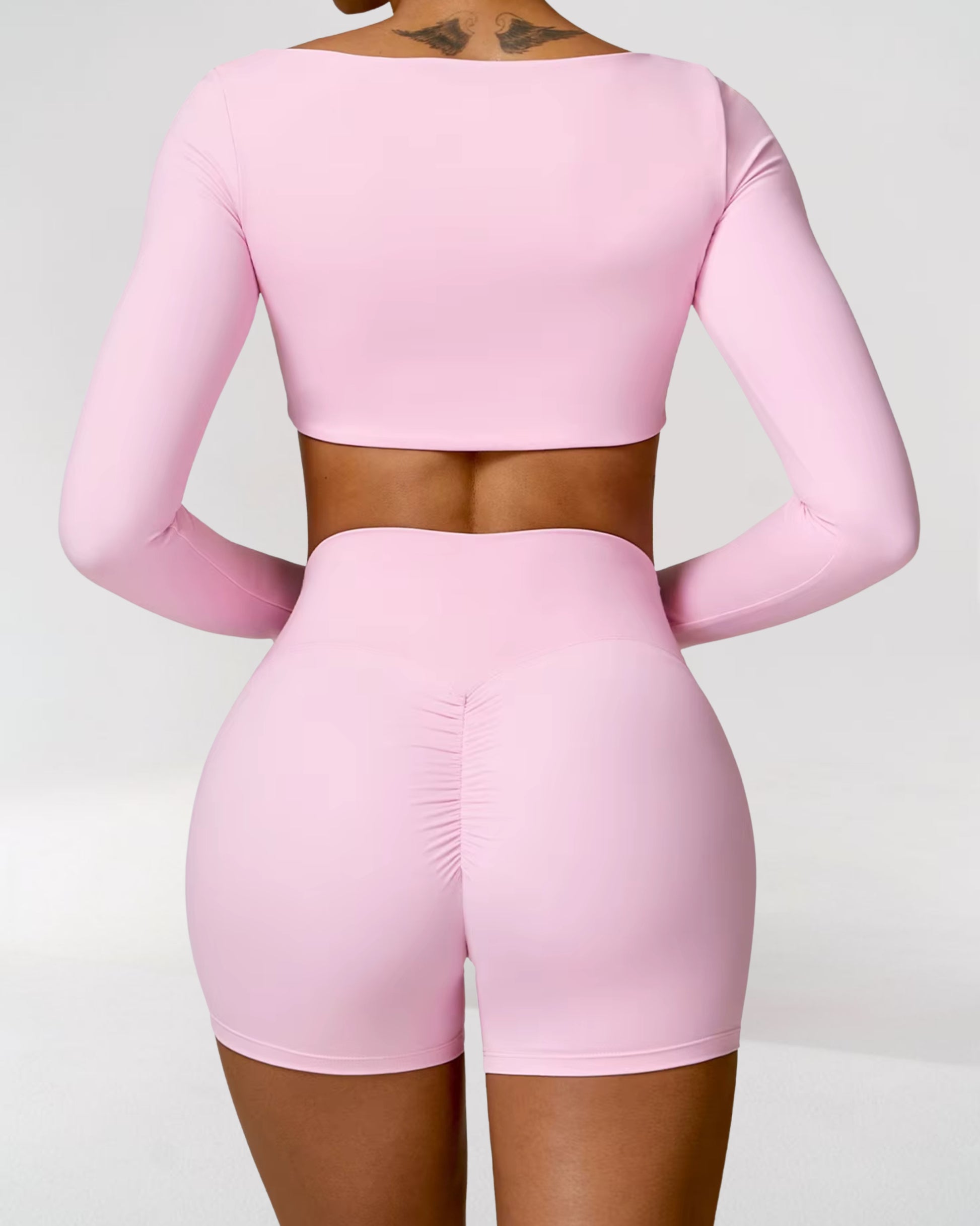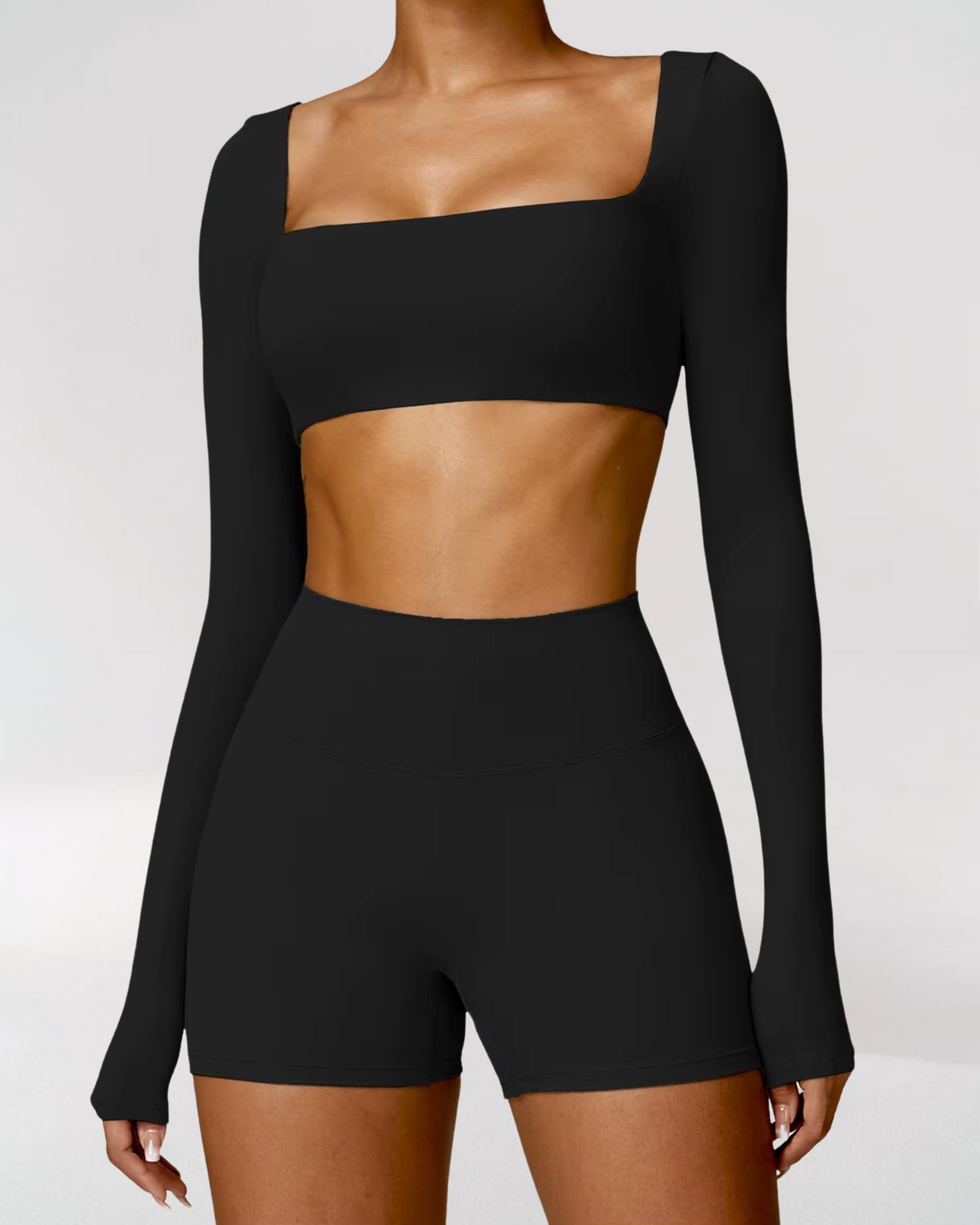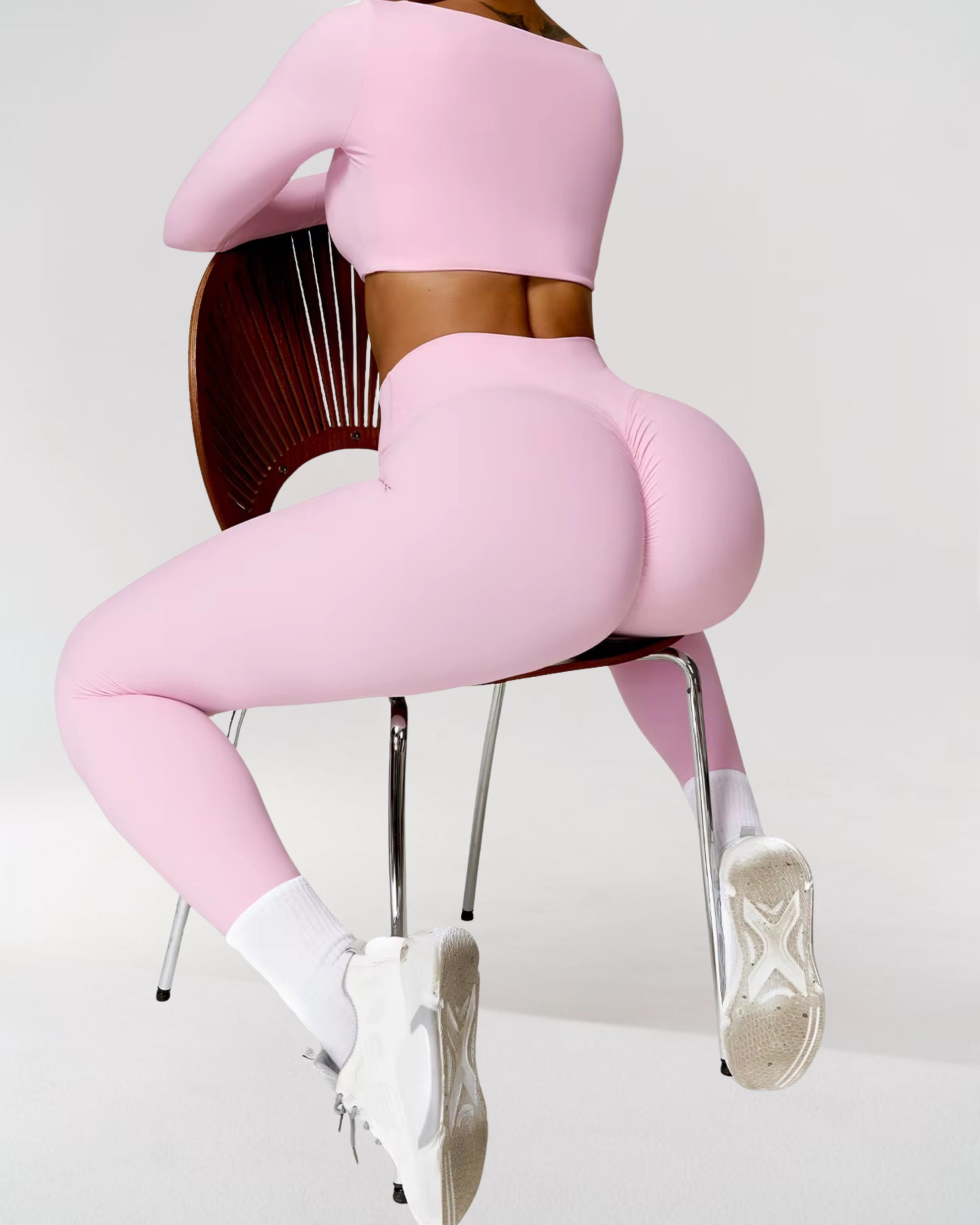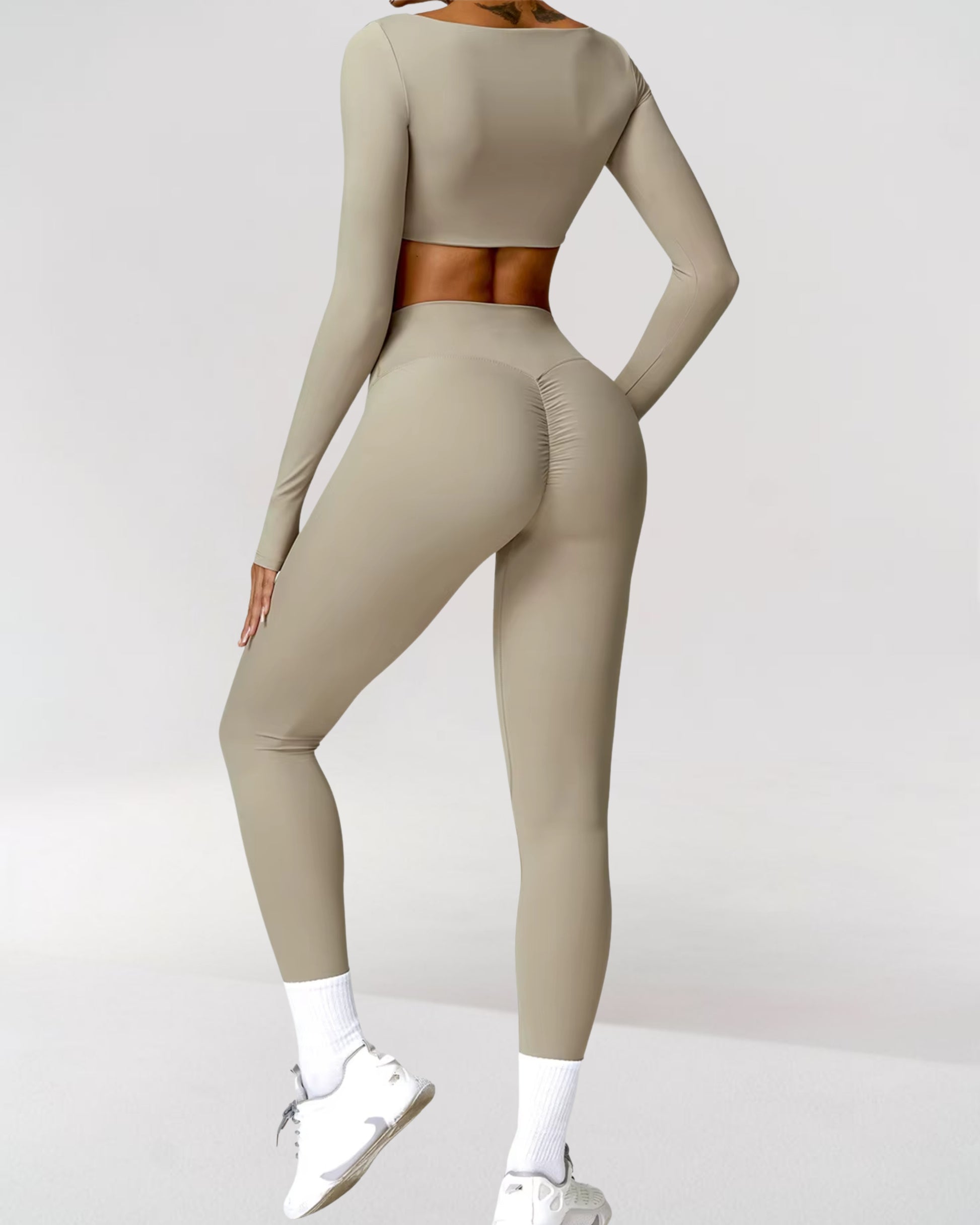 The high-waisted leggings provide sculpting compression, accentuating your natural curves while offering full mobility for Pilates, yoga, and beyond. Paired with the full-support long-sleeve top, this set enhances performance, offering just the right level of compression for a flattering, figure-hugging fit.
